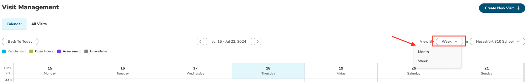 Step 3: Choose to view the calendar by Week or by Month.