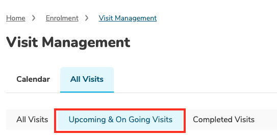 Step 2: Click on Upcoming & On-going Visits.