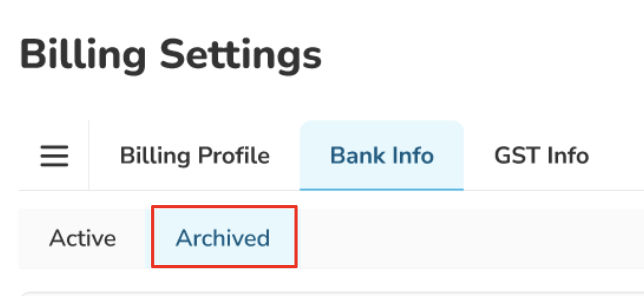Under the Bank Info tab, go to Archived, and select the bank account number you want to unarchive.