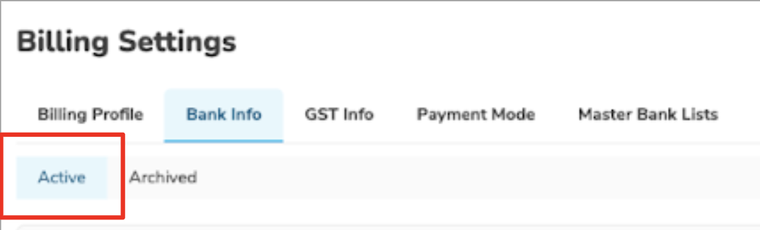 Under the Bank Info tab, go to Active, then select the bank account number you want to archive.