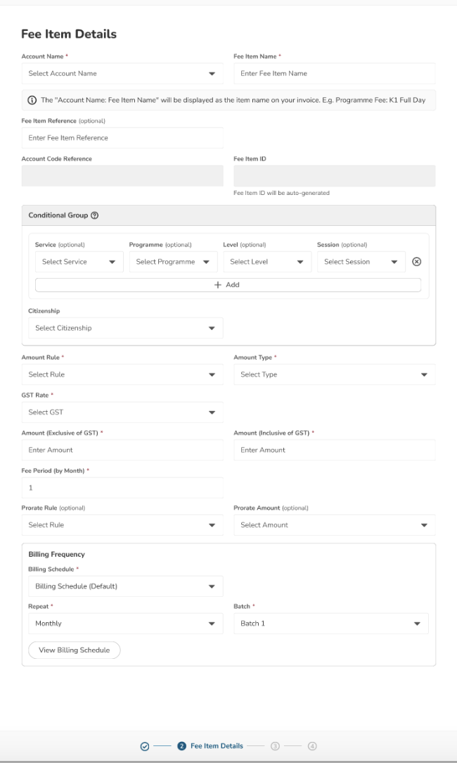 1. Add a New Fee Item
