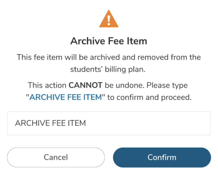 - Once completed, the Fee Item will be automatically removed from the student billing plan. The action will also be recorded in the Activity Log