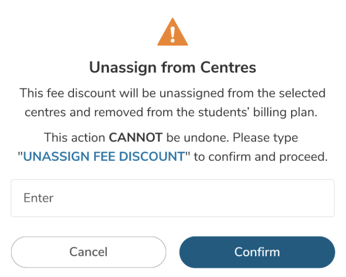 Centre Admins will be notified when a Fee Discount is archived or unassigned.