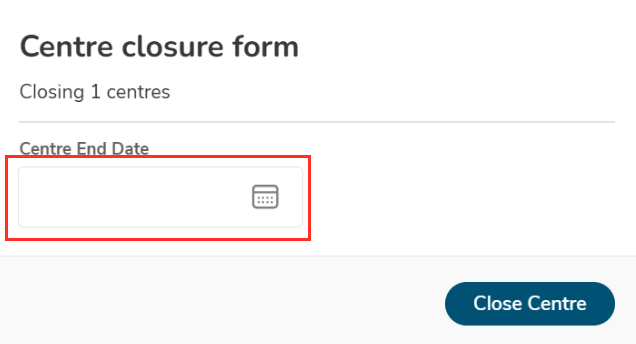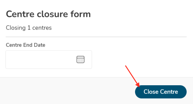 In the Center Closure form, choose the Center End Date.