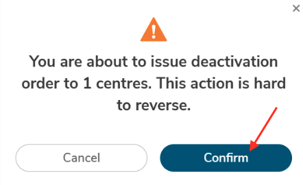 Review the details, and if everything is correct, click "Confirm" to finalize the deactivation.