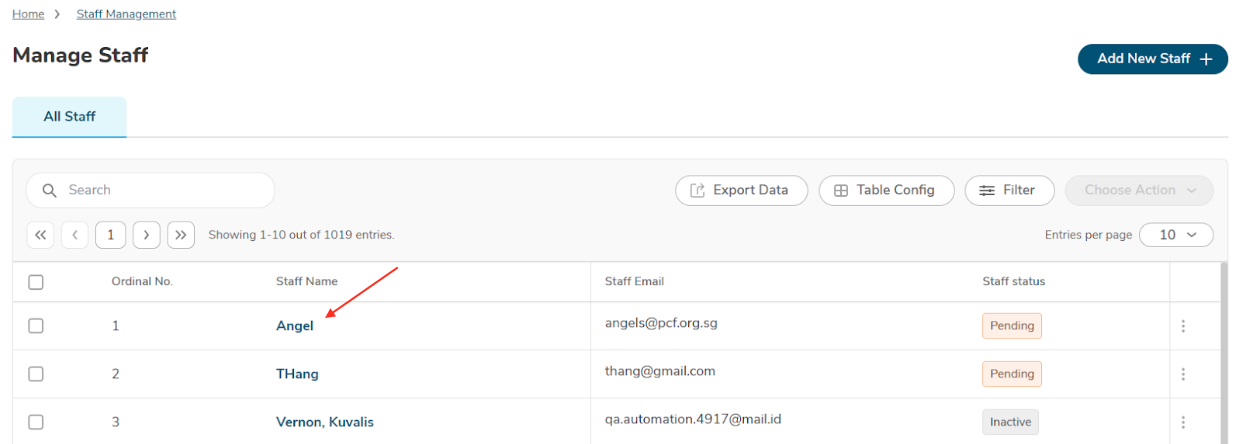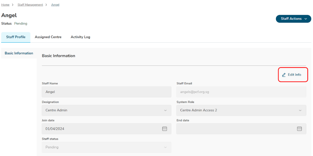 In the Center Profile, click on "Edit Info" to update the staff's basic information.