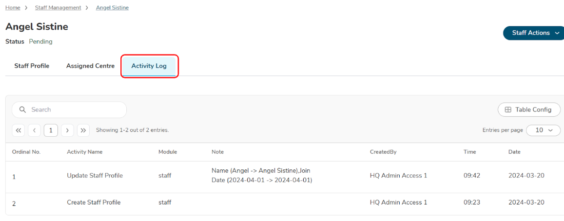 Once you've made the necessary changes, click on the "Save" button. Your updates will be reflected in the Activity Log.