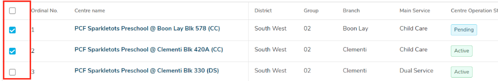 Select the checkboxes next to the centers you wish to assign to the staff member.