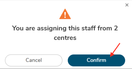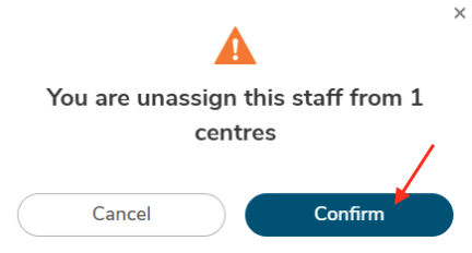 In the Assigned Centres tab, select the checkbox(es) next to the centers you want to unassign from the staff member.
