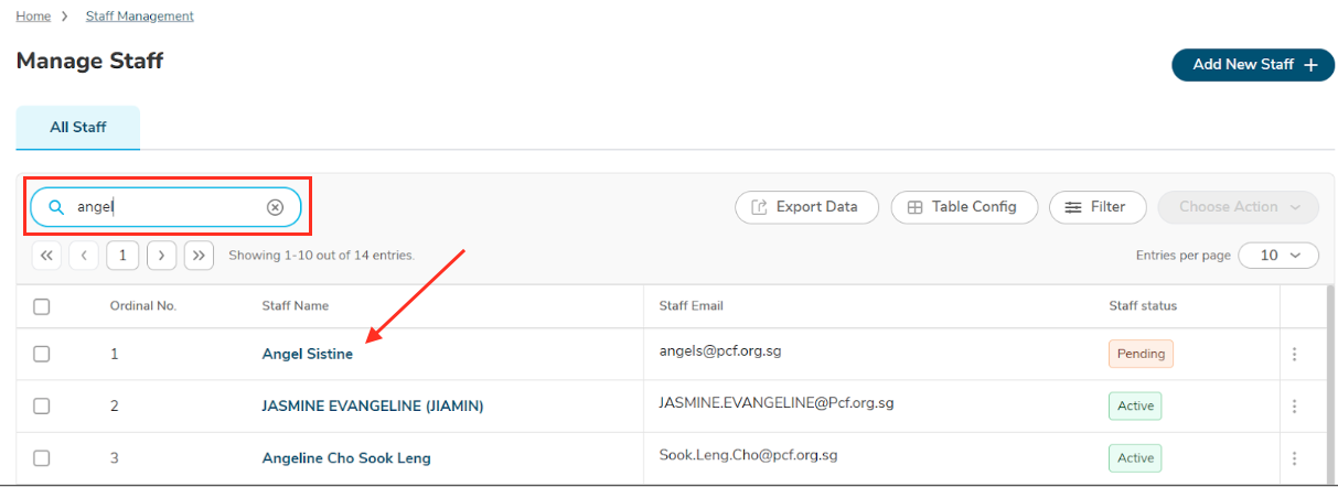 Step 2: To view the staff member’s full details, click on the staff’s name.