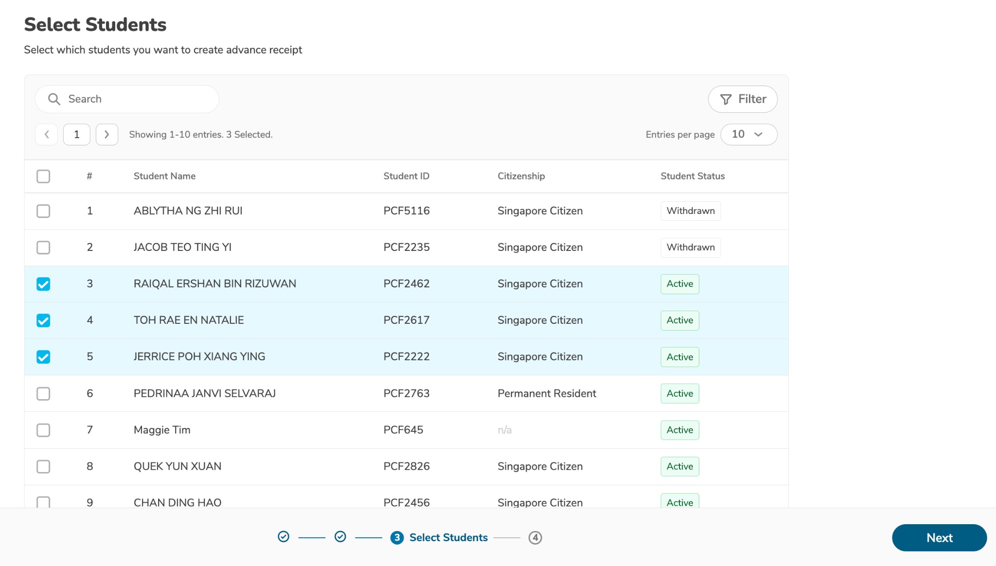 Step 4: Choose Students