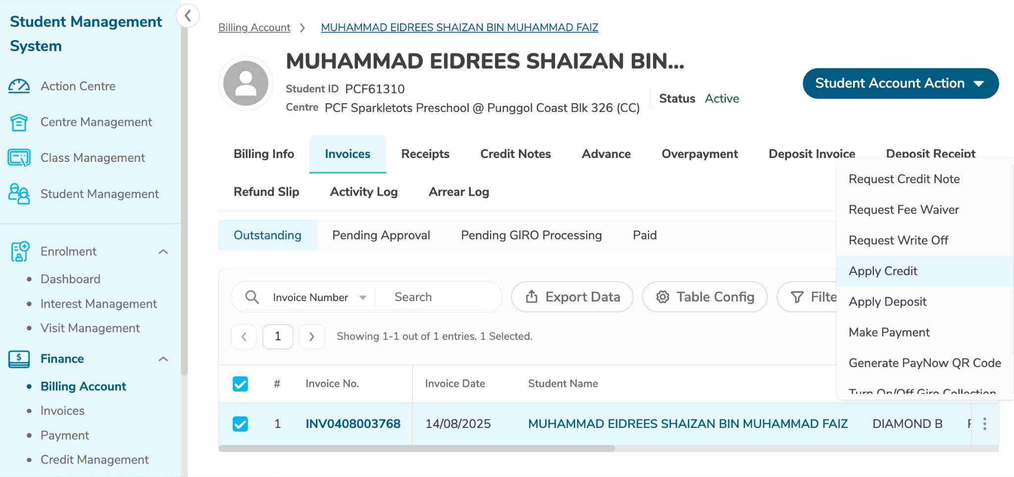 Here are the steps to Utilize Advance Receipt for Outstanding Invoice: