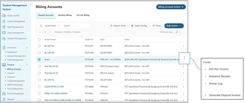 Here are the steps to create Ad-Hoc billing for a single student: