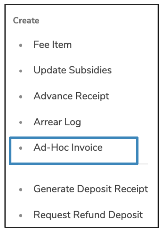 Click Create Ad-Hoc Invoice