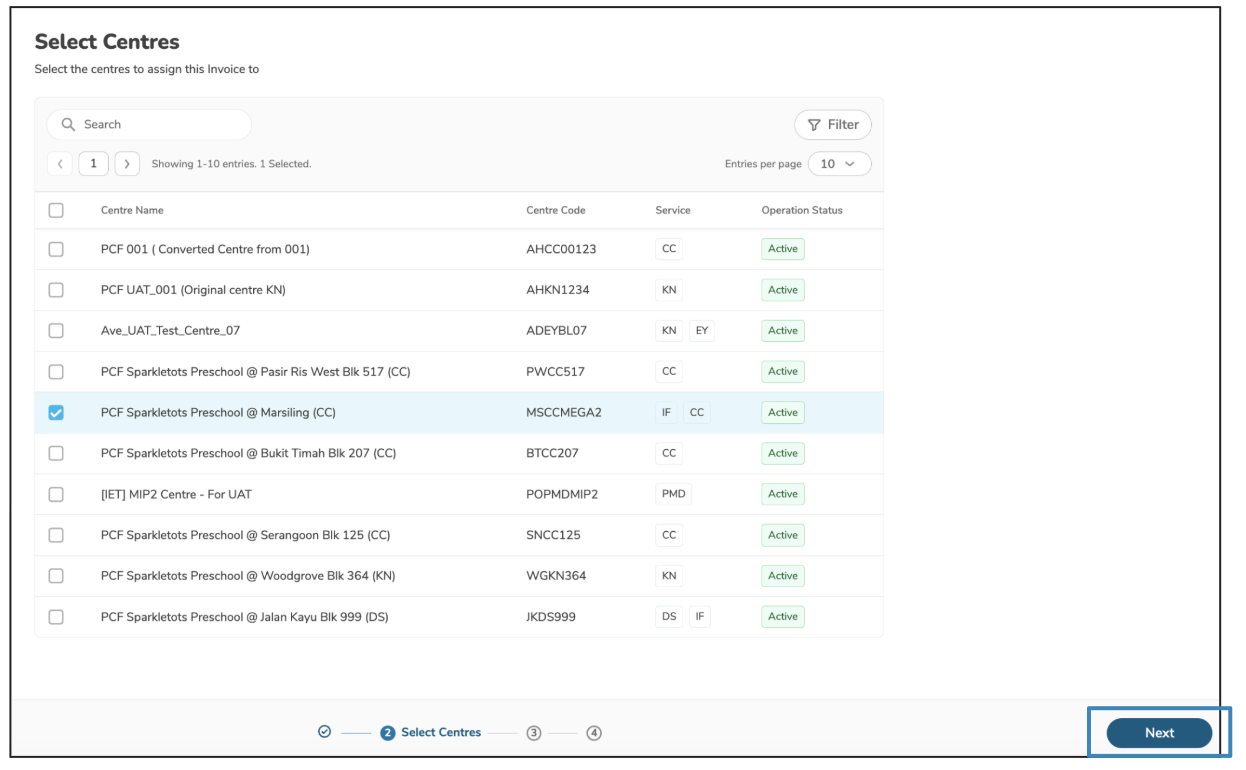 Step 3: Select Centre