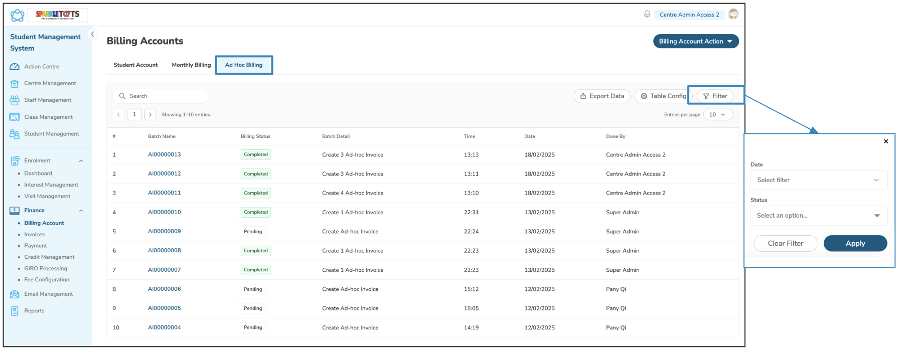 Click on Ad Hoc Billing tab